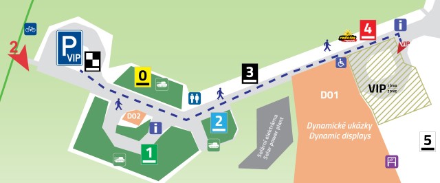 Z vyhrazeného parkoviště se dostanete pěšky ke vstupu do VIP zóny dle plánku níže.
