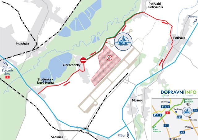 Pro příjezd hostů, partnerů a organizátorů Dnů NATO v Ostravě & Dnů Vzdušných sil AČR do areálu akce slouží silnice mezi Petřvaldem-Petřvaldíkem a Albrechtičkami. Vzhledem k intenzivnímu pohybu techniky je na ní zaveden jednosměrný provoz a je nutné přijíždět od Petřvaldíku. Na příjezdových cestách je možné se řídit i směrovými cedulemi "Dny NATO VIP".