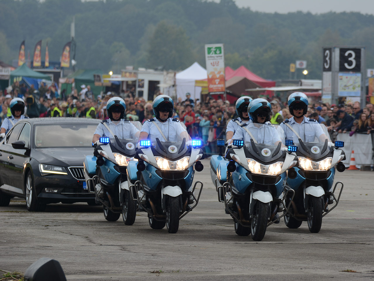 I letos se na mošnovském letišti představí motocyklová jednotka Hradní stráže, a to v oblíbené dynamické ukázce doprovodu prezidenta ČR a nejvyšších představitelů cizích států při oficiálních návštěvách. Pro diváky je dále připraveno exhibiční vystoupení osmi moderních speciálně upravených motocyklů BMW řady R, jež budou doplněny vozidly Škoda Superb a Land Rover Discovery.