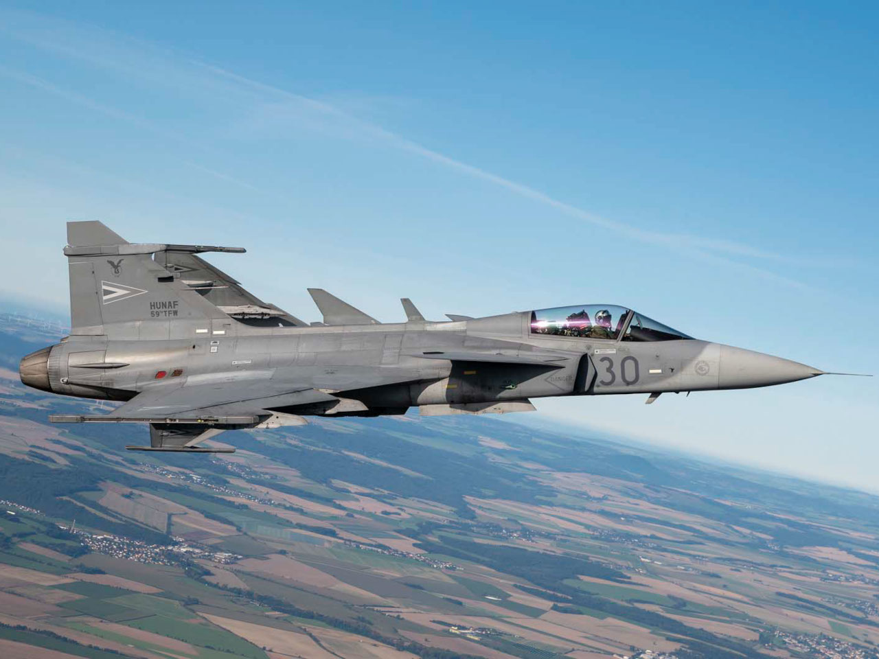 Letouny JAS-39 Gripen má Maďarsko stejně jako Česká republika pronajaté od Švédska. Jsou to lehké víceúčelové bojové stroje konstrukčně vycházející z předchozích modelů firmy Saab, především z letounu Viggen. Díky delta křídlu a tzv. kachnímu uspořádání vyniká výbornou manévrovatelností a postačuje mu krátká vzletová a přistávací dráha. Tyto vlastnosti pak též předvádí při svých vystoupeních.