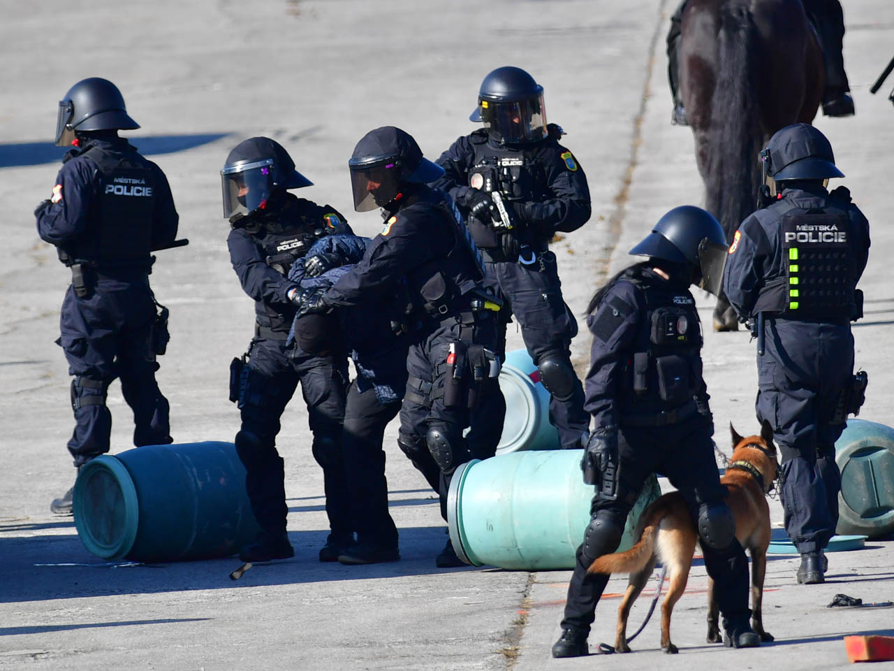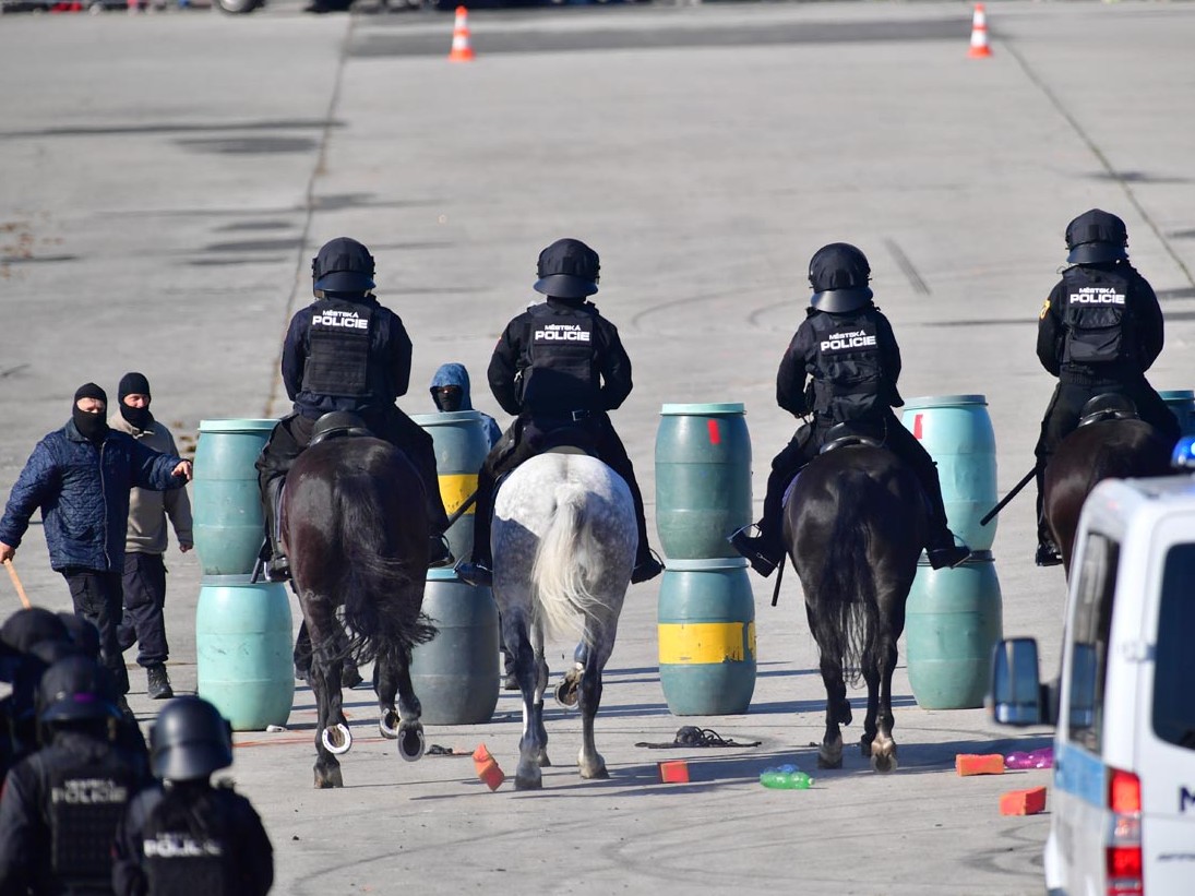 Návštěvníci se mohou těšit na společnou dynamickou ukázku strážníků z úseků hipologie, kynologie a operativního oddílu zaměřenou na zásah proti rozvášněnému davu, který závažným způsobem narušuje veřejný pořádek.