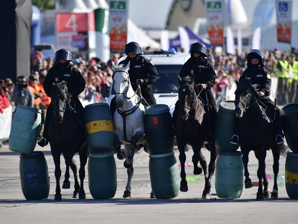 Komentovaná dynamická ukázka bude zaměřena na zásah proti rozvášněnému davu, který hrubým způsobem narušuje veřejný pořádek a nerespektuje zákonné výzvy strážníků. Při této ukázce se návštěvníci mimo jiné dozvědí, jakým způsobem Městská policie Ostrava využívá koně v rámci výkonu služby a proč je právě kůň nepostradatelným a efektivním pomocníkem při zajištění místních záležitostí veřejného pořádku.
