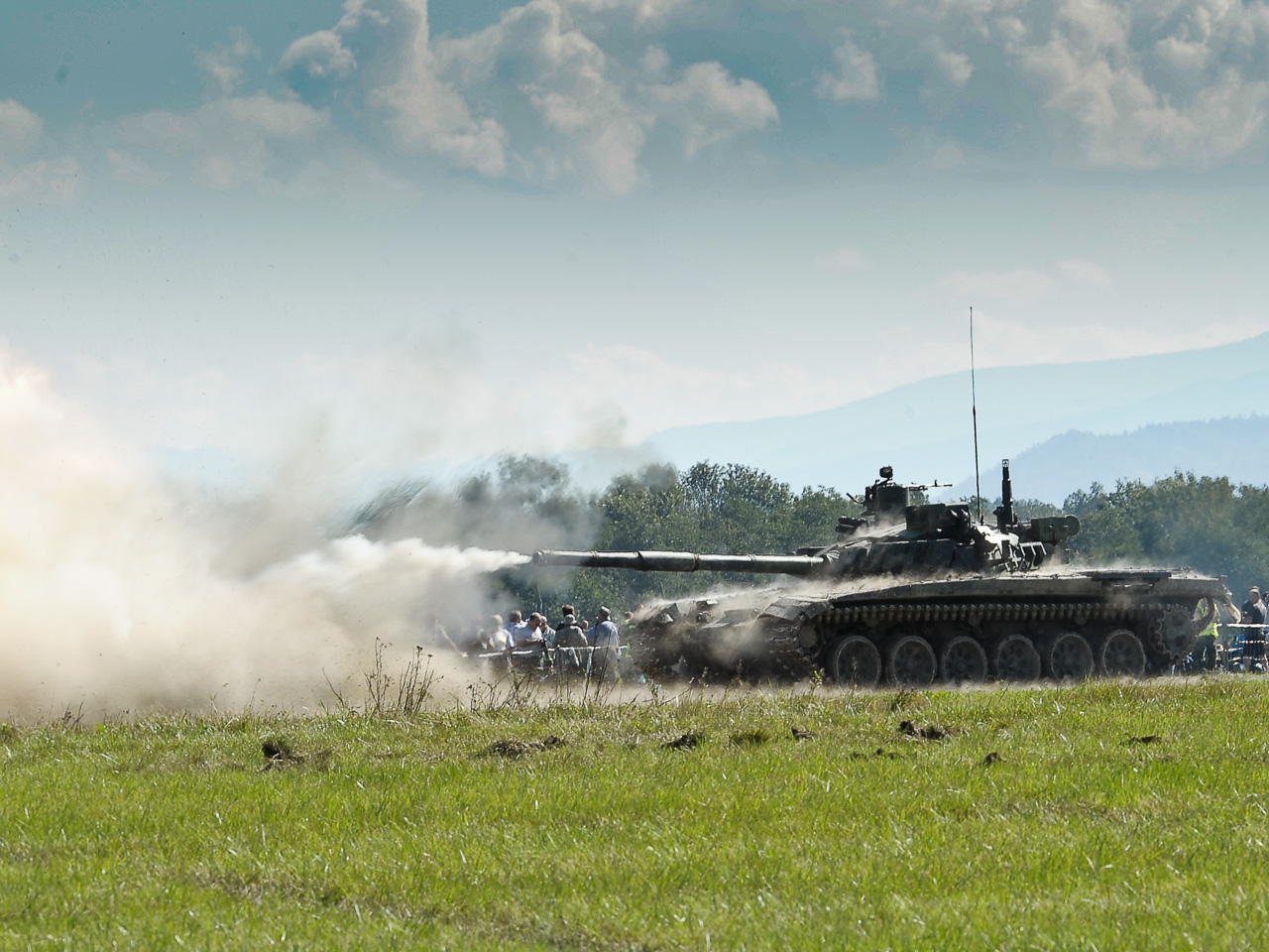 Velkými bojovými ukázkami však prezentace vojenské techniky armády nekončí, tank T-72 M4 CZ se rumunským TR-85M1 se představí ještě jednou, kdy ve společné ukázce předvedou jízdní vlastnosti.